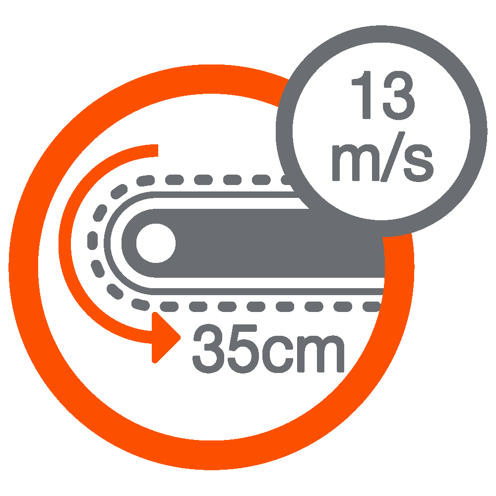 - 35cm Oregon bar and chain length with 13m/s chain speed