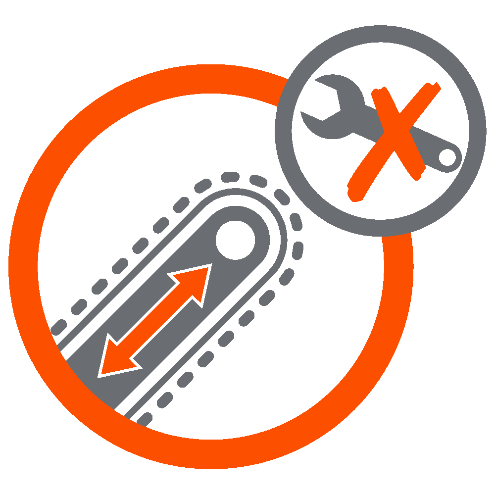 - Tool-free chain tensioning for quick chain fitting and adjustment