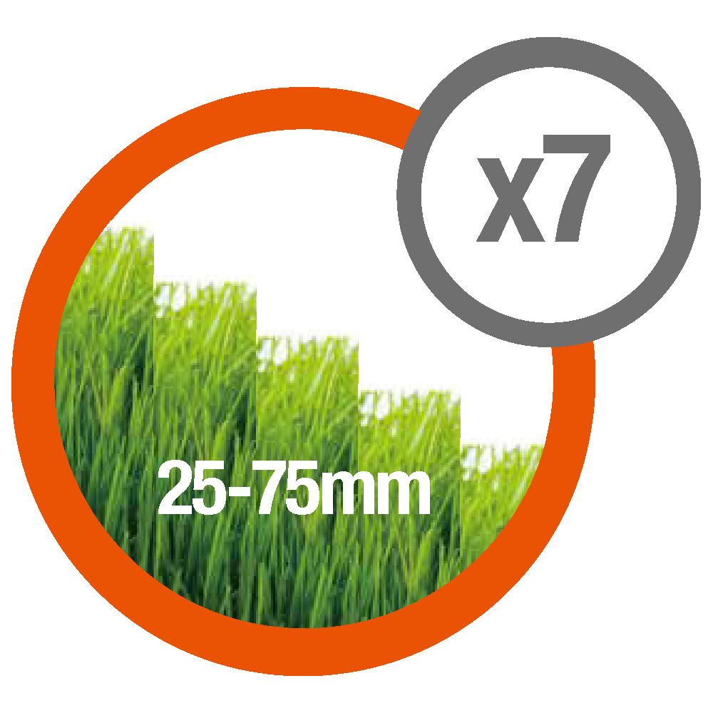 - 7 cutting heights with a central height adjustment for a perfect cut throughout the season