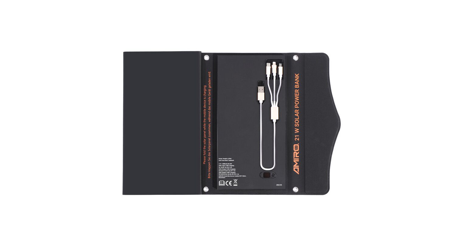 - 3 foldable solar panels